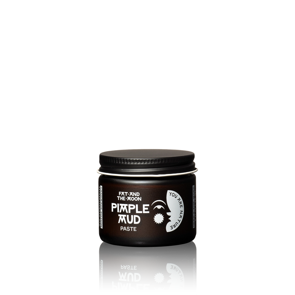 Details The pulling effect of the drying clay helps get circulation moving in the face, and with blood comes clean-up cells! Improving circulation in the face improves your skin condition overall. Witch hazel extract and Tea Tree get deep into those pores and Goldenseal used topically works wonders clearing bacteria looking to camp out, making Fat and the Moon's Pimple Mud great to apply to splinters, too!